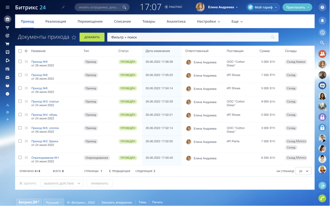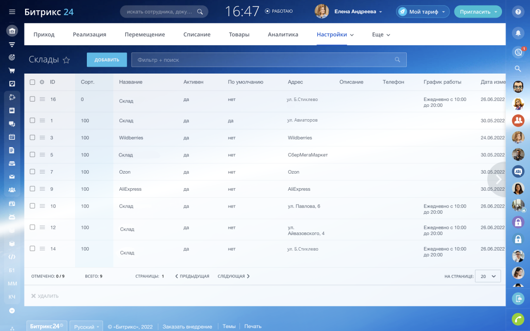 с отгрузкой или неправильным учетом. Выделите каждый маркетплейс как отдельный склад в Битрикс24. Следите за продажами