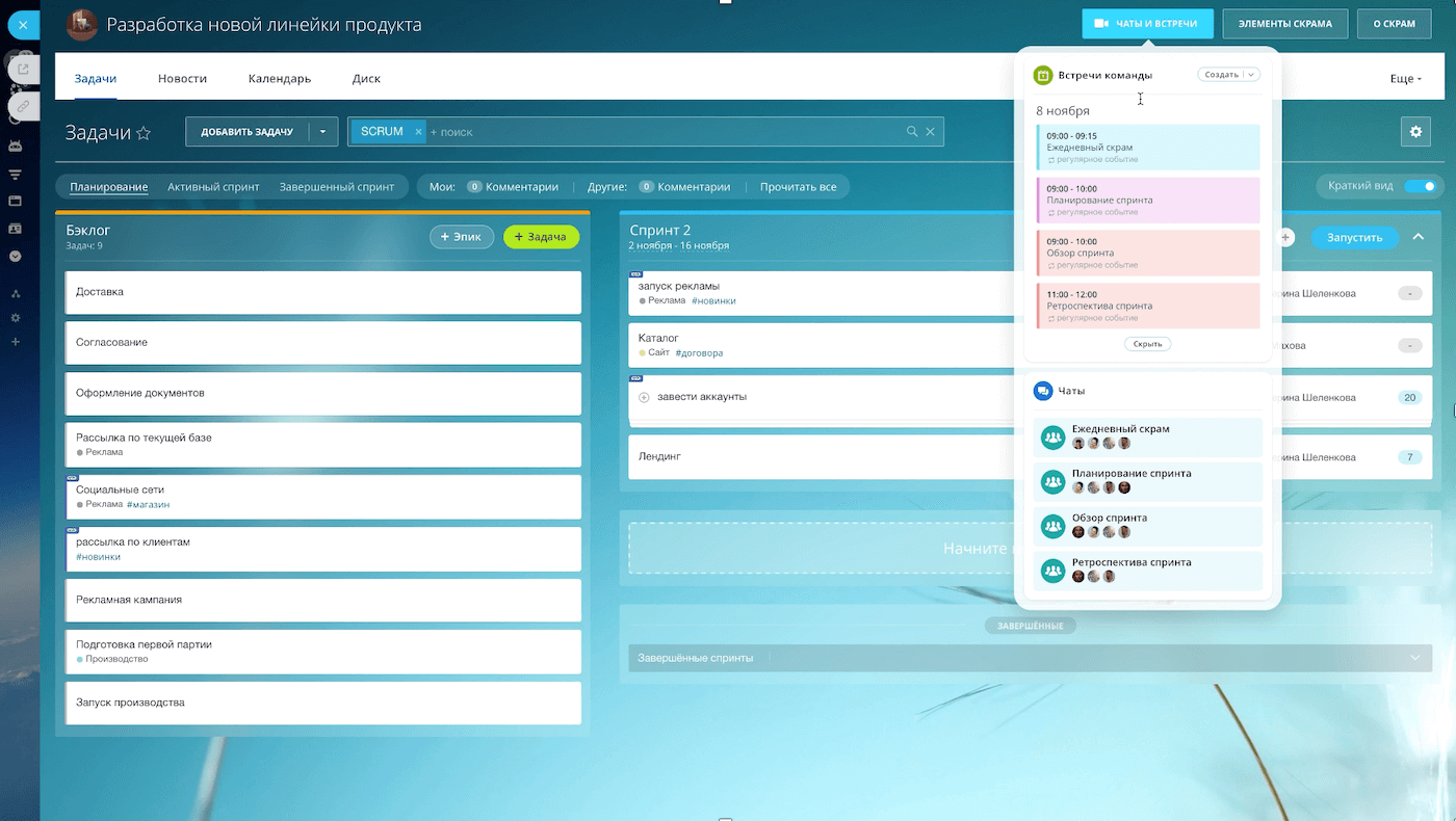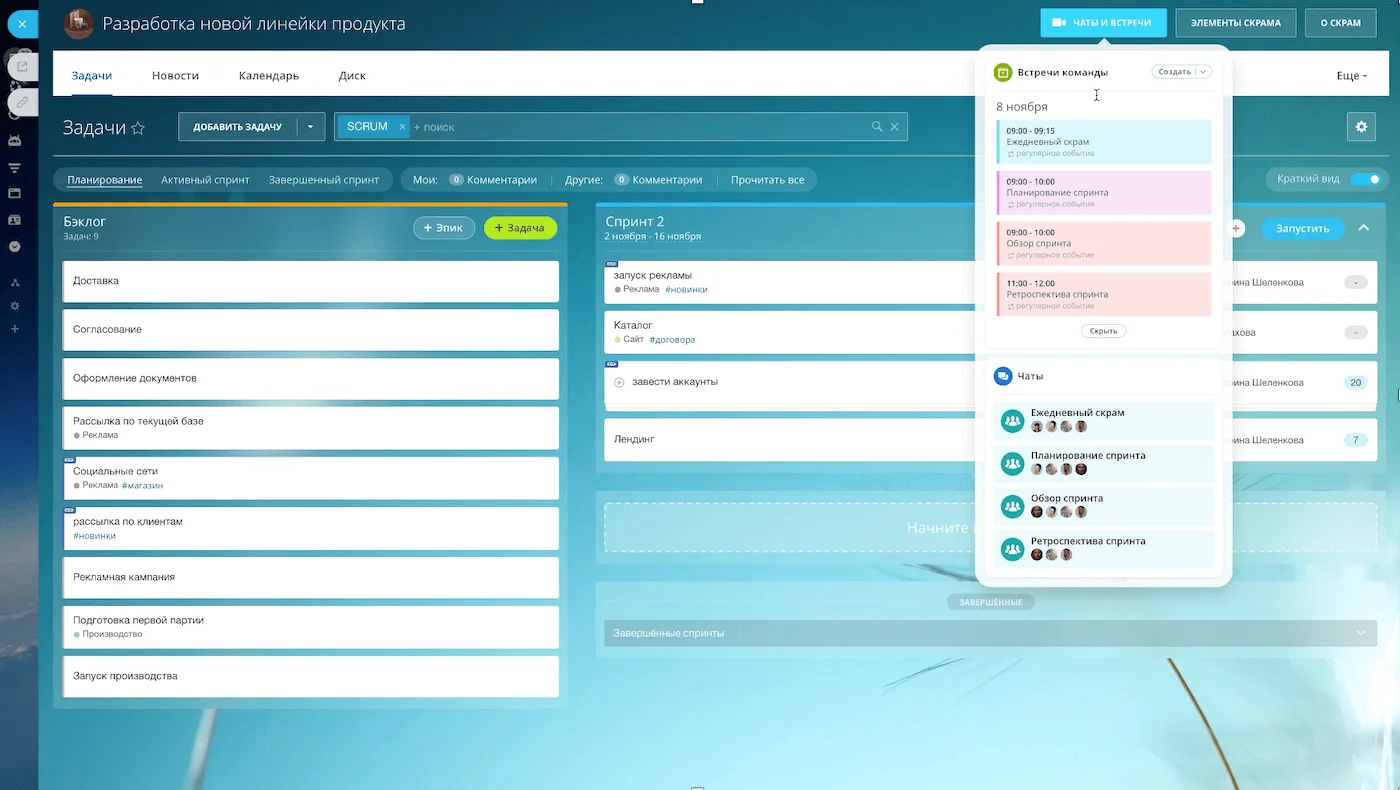 Используйте единое пространство и для работы скрам-команды, и для работы по общим целям компании.
