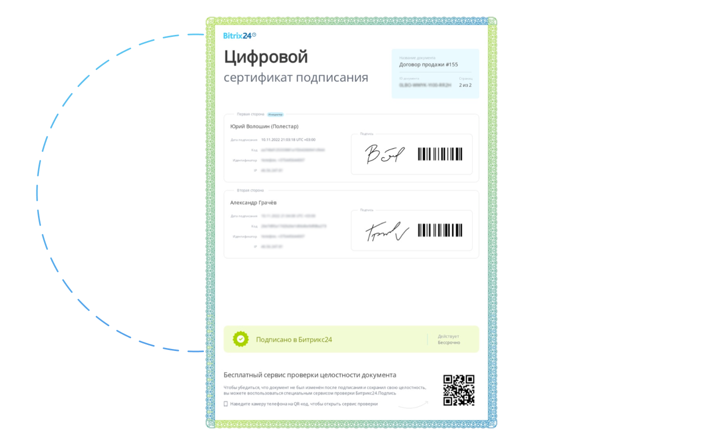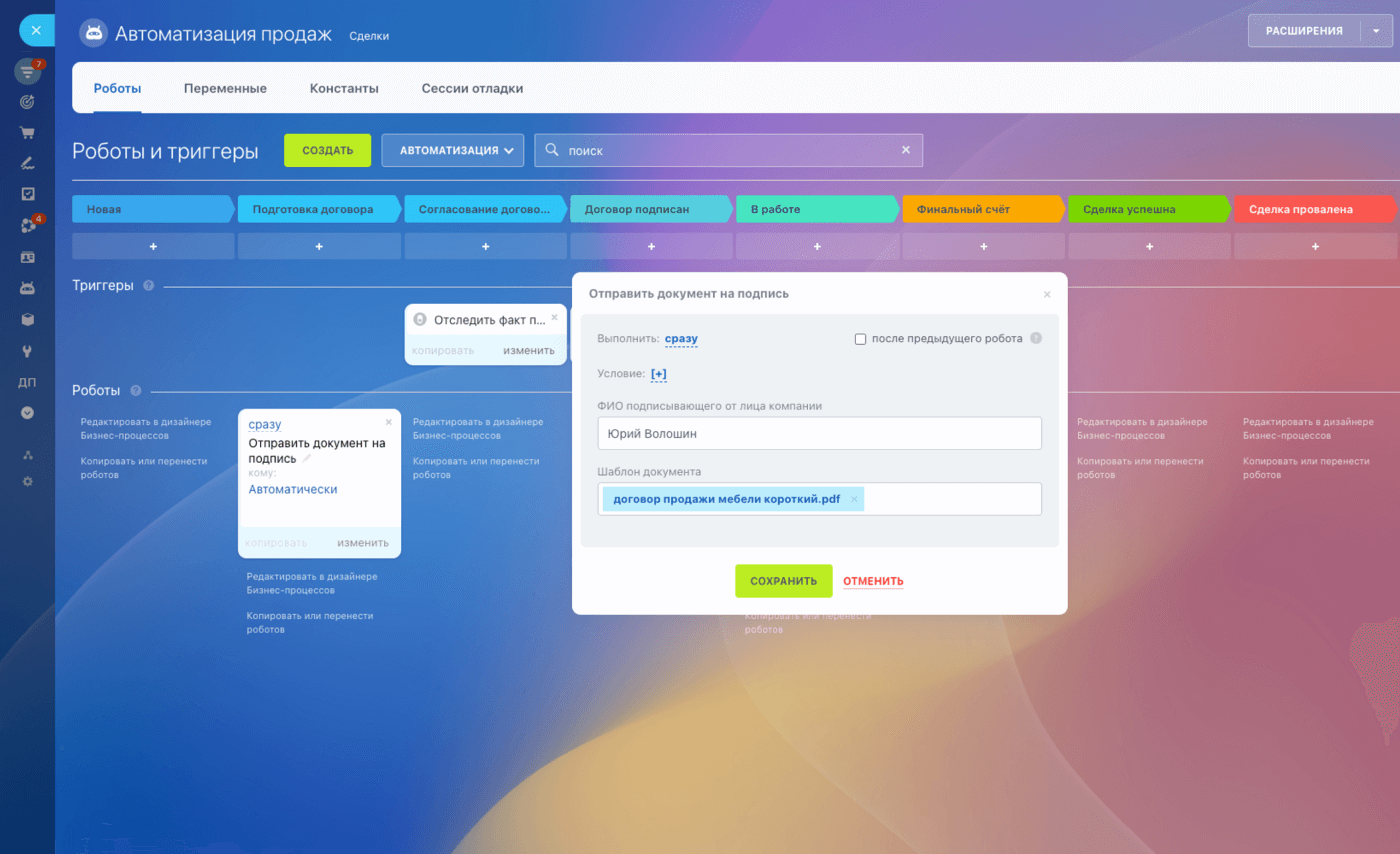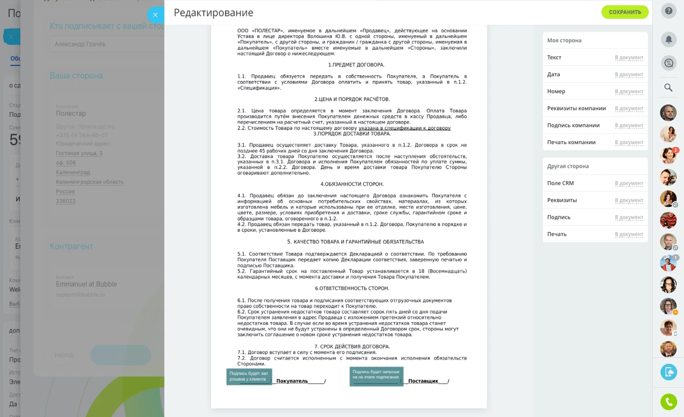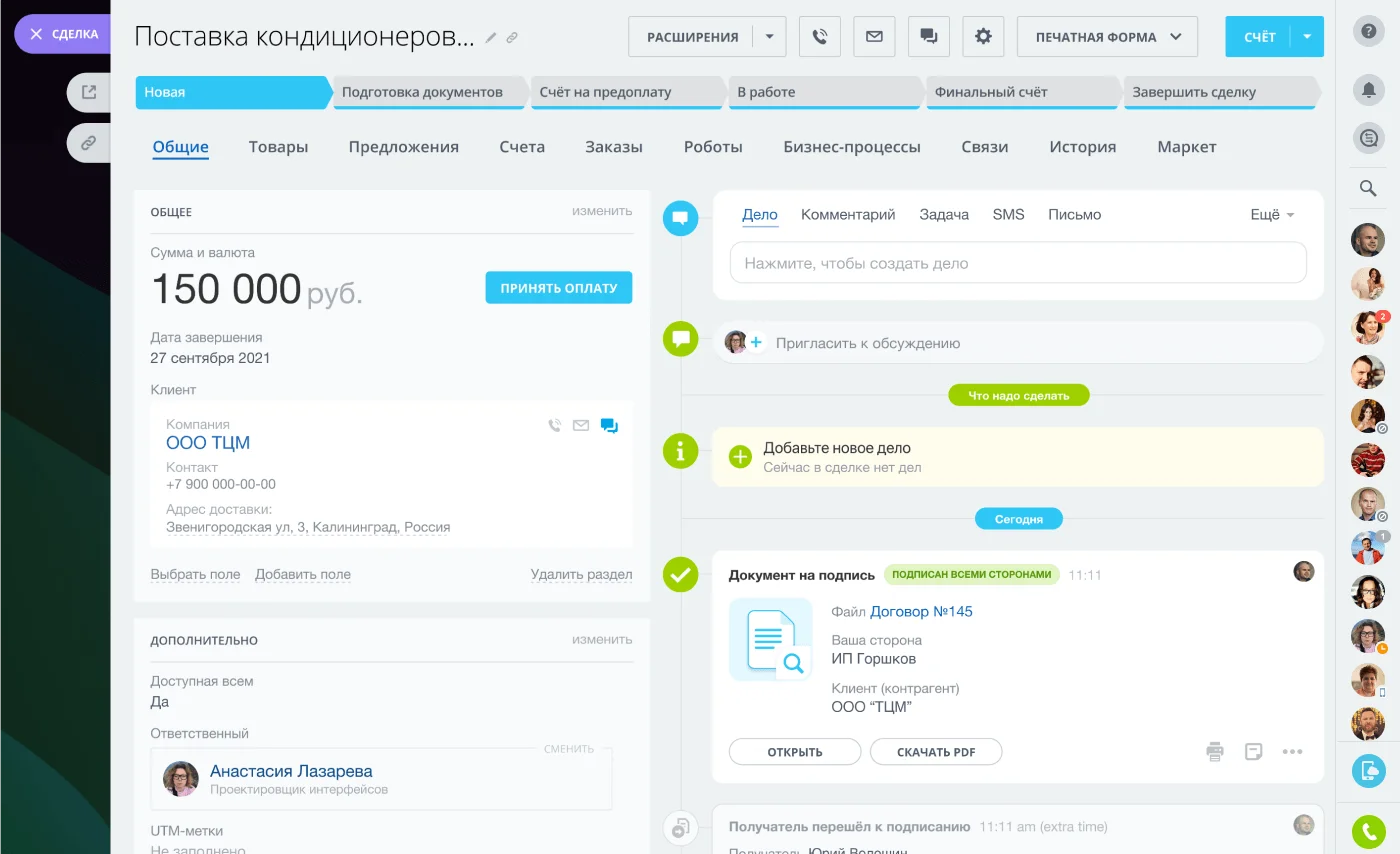 Пользоваться Подписью так просто, что вы будете удивлены. Отправьте документ клиенту по e-mail, SMS, WhatsApp. Для подписи ему даже не нужно регистрироваться в Битрикс24.