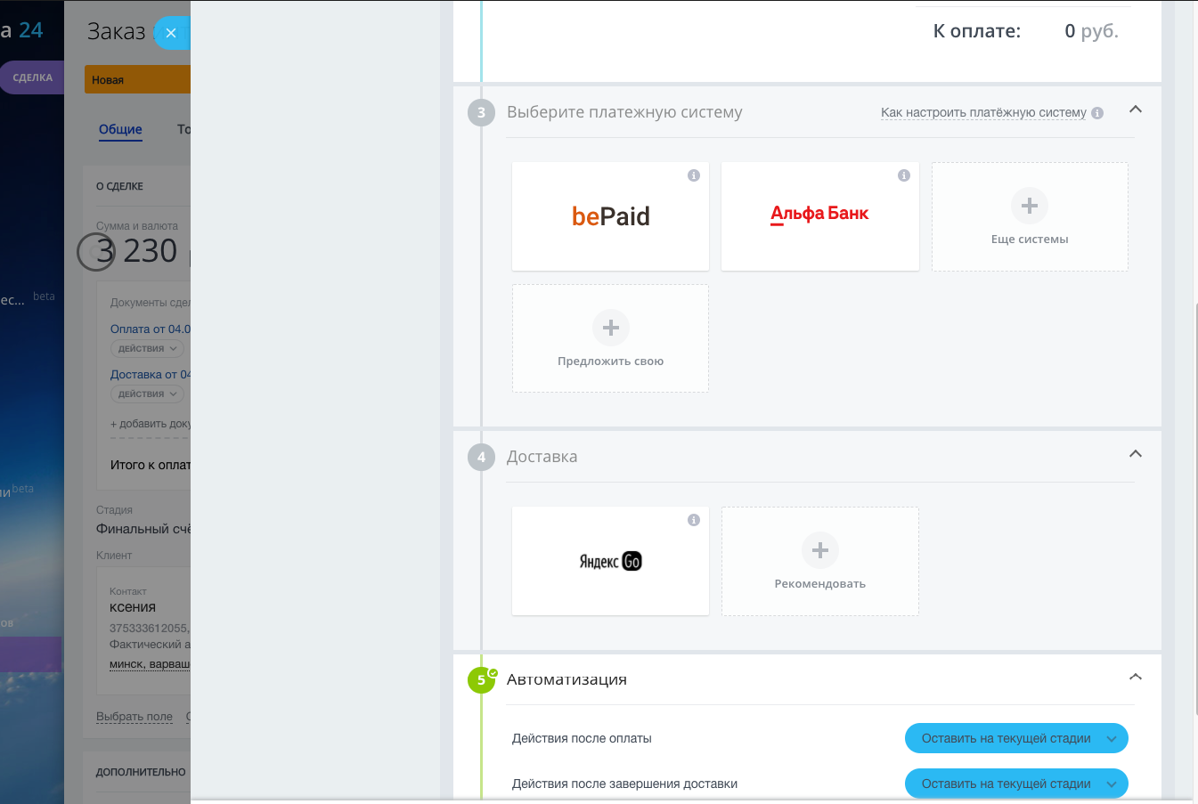 Все сообщения клиентов, информация о заказе и данные по оплате автоматически сохраняются в CRM.
