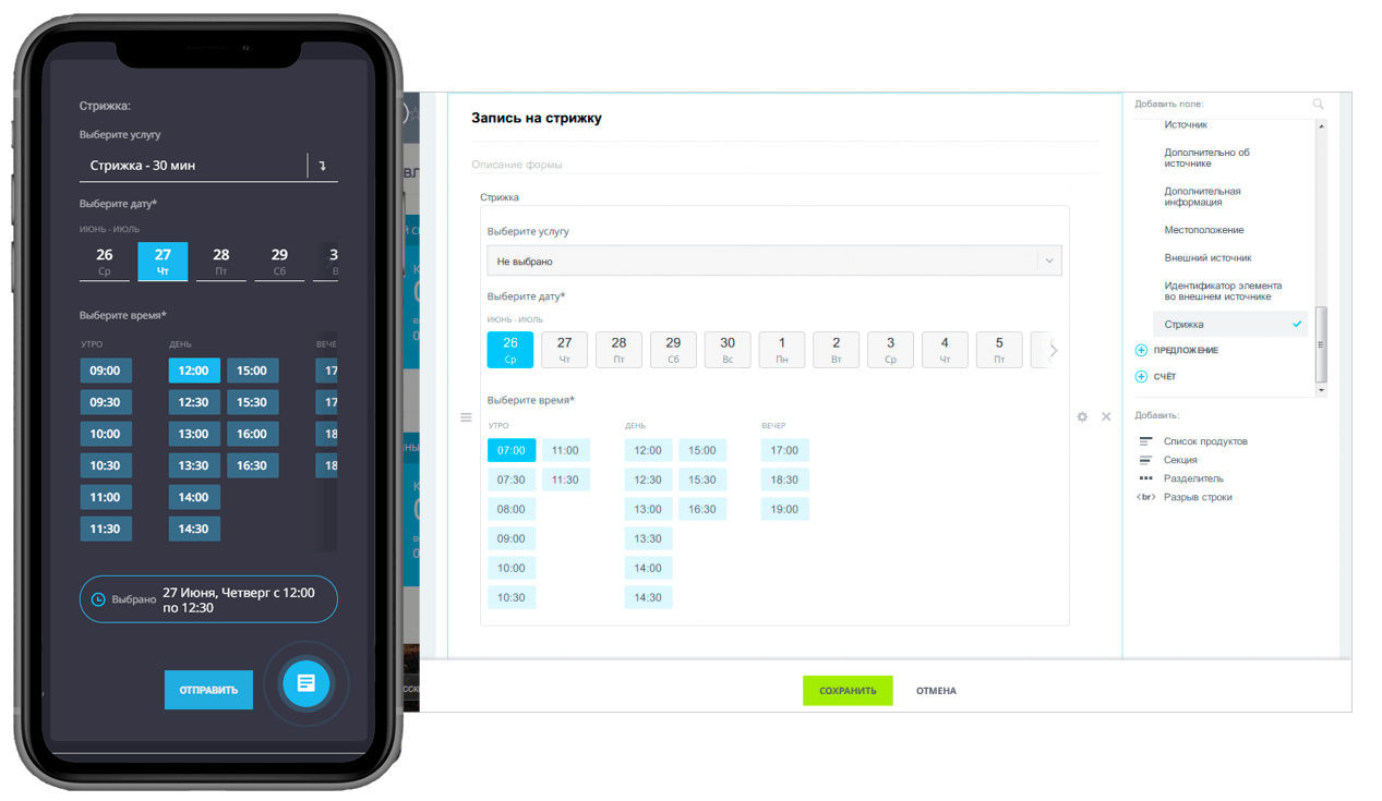 Создавайте в Битрикс24 простые формы для онлайн-записи на услуги. Битрикс24 автоматически создаст страницу для отправки клиенту. Клиент заполнит форму и его контакты автоматически окажутся в CRM.