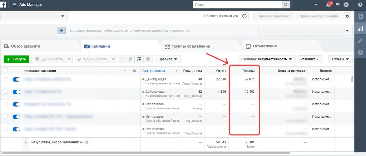 Охваты вы увидите в кабинетах рекламных площадок (Яндекс, Google, Meta) или в сервисах для сквозной аналитики в сводном виде.