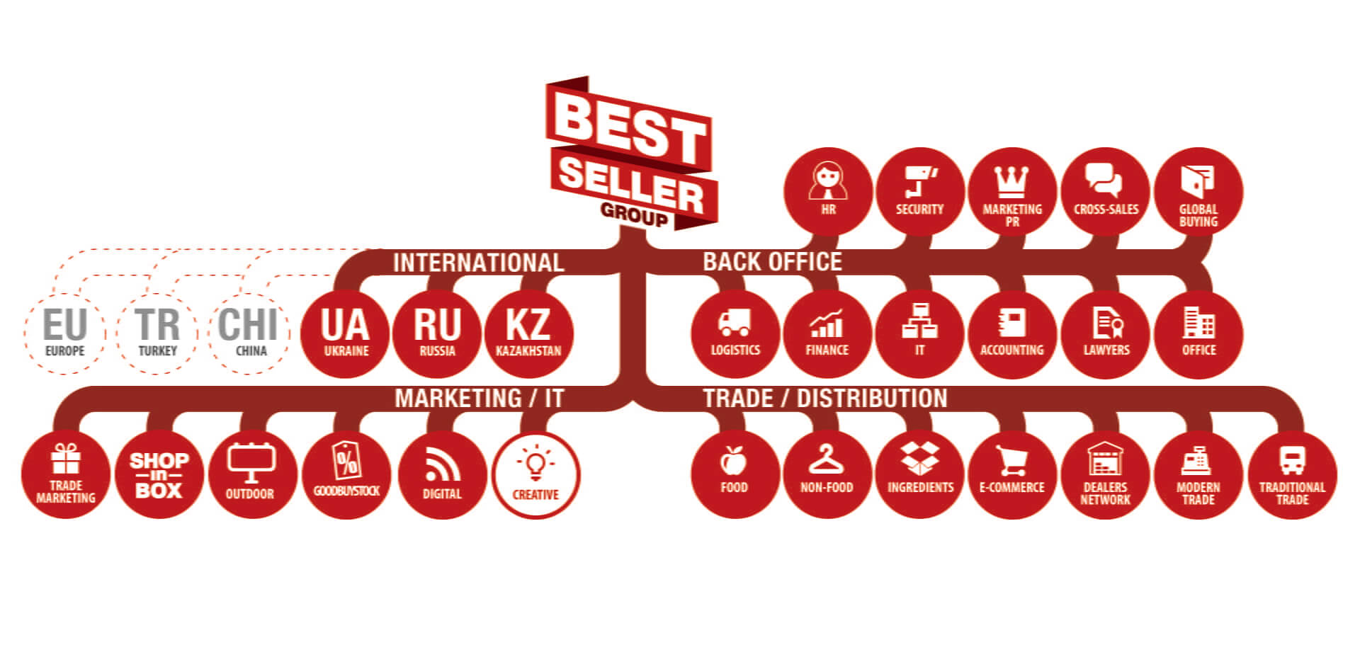 Но за 6 лет работы Bestseller стал высококлассным специалистом в области коммуникаций, организации дистрибьюторских систем и трейд-маркетинга (стимулирования товаров в торговой цепи). Поэтому новую бизнес-модель было решено строить на двух китах — аутсорсинге, то есть делегировании отдельных бизнес-процессов партнерам, и синергии, то есть сочетании уже привычной дистрибьюторской деятельности и совершенно нового направления — аутсорсинга мерчендайзинга.
