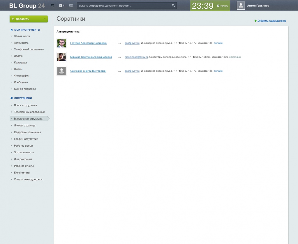 Таким образом, интранет БЛ ГРУПП превратился в рабочий инструмент, создавший единое коммуникационное пространство для всего штата компании, с помощью которого общаться формально (и неформально) стало эффективнее и удобнее.