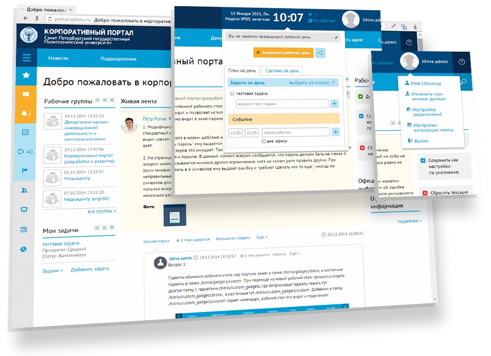 — Проблемы большого научно-образовательного заведения мало отличаются от проблем крупных бизнес-организаций: и там, и здесь много разнородных внутренних веб-ресурсов и систем, которые не связаны между собой. Нет удобного единого пространства, где можно получить информацию по рабочим вопросам и понять, кто из коллег может помочь тебе их решить, а кому можешь помочь ты. Единый доступ ко всем рабочим контактам, сервисам и инструментам, который дает «Битрикс24» — это отличный выход и для бизнеса, и для науки, и для образования.