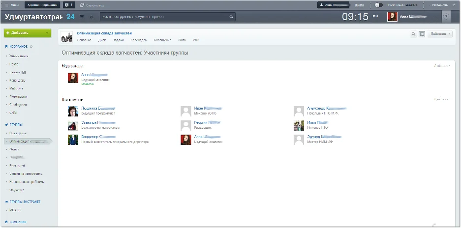 Анна Шадрина: Система внедрялась для координации деятельности рабочих групп, и это направление предсказуемо получило наибольшее развитие. В рамках каждой из них обсуждаются перспективы компании, выкладываются фотографии, инструкции, регламенты и планы дальнейших работ. Удобно, что у «1C-Битрикс» имеется продвинутая система контроля прав доступа к содержимому, это сильно поспособствовало в ходе начальной настройки.