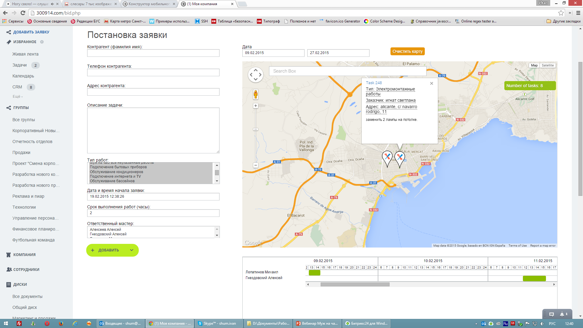 — Есть мастера, которые разъезжают по городу и выполняют заказанные работы. У каждого — мобильное устройство. И есть диспетчер, который принимает заявки на вызов мастеров. Когда поступает заявка, он, сидя перед компьютером, с помощью специально разработанного интерфейса, смотрит, какая у мастеров нагрузка в данный момент и решает, кто по какому адресу и когда поедет.